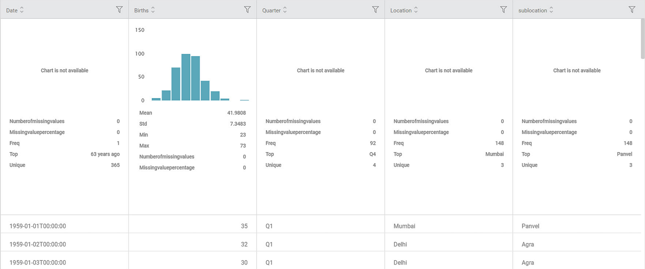 The resultant dataset is as shown below. The Data page displays all rows containing the Date selected in the filtering condition.