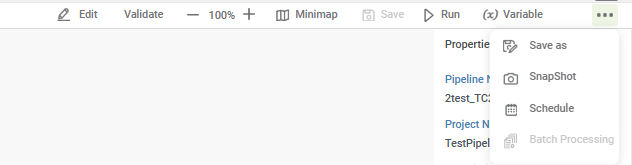 • More Menu → Save As, Snapshot, Schedule, Batch Processing
