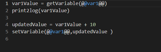it in RubiPython as : Var1Value = getVariable(@@var1@@).