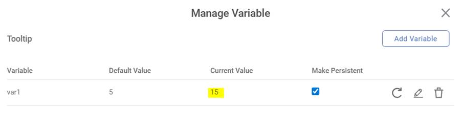 execution, the current value of var1 variable is set as 15.