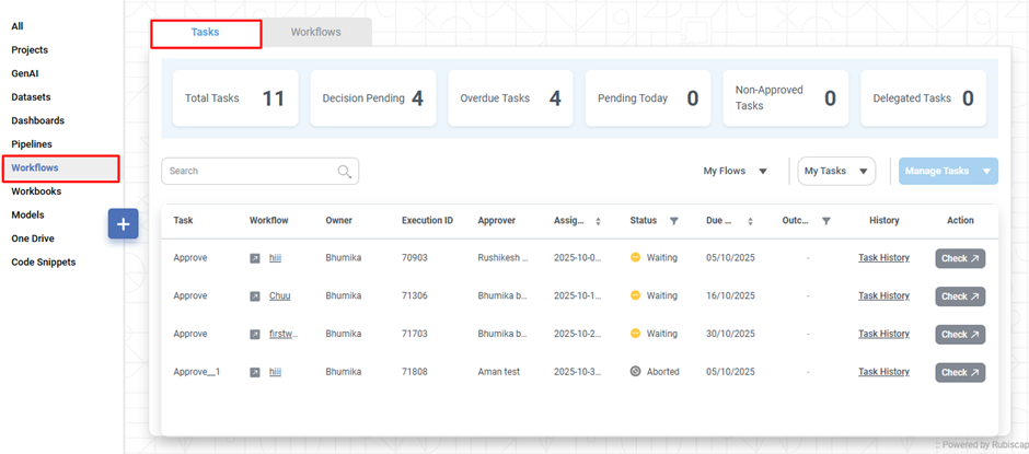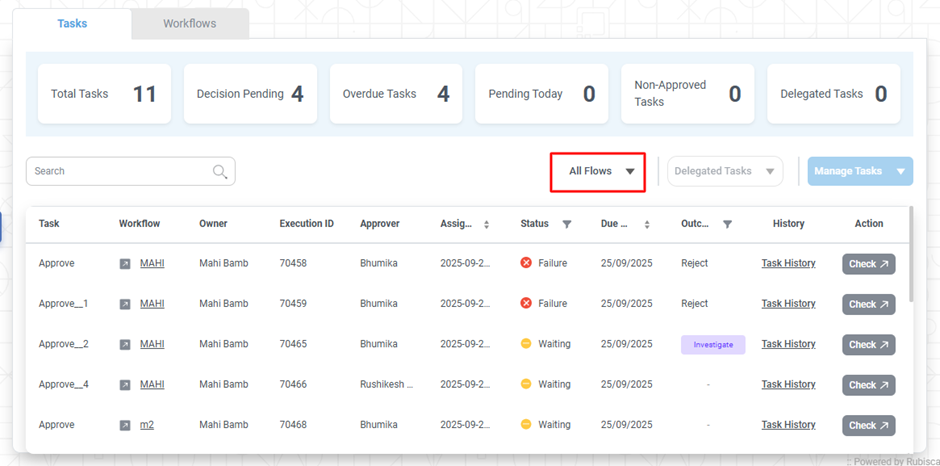 Once user takes action (Approve / Reject / Investigate), the task disappears