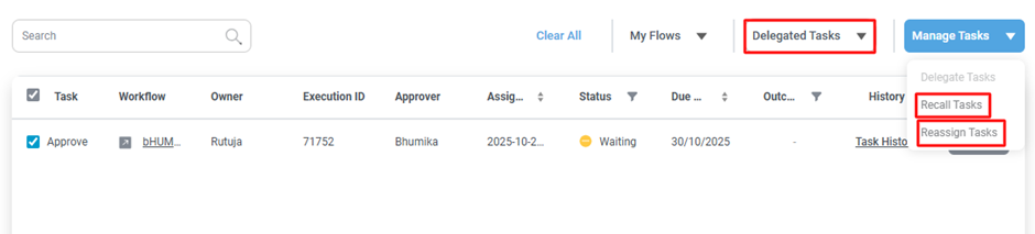 while viewing the delegated tasks, the logged-in user can retrieve a task that