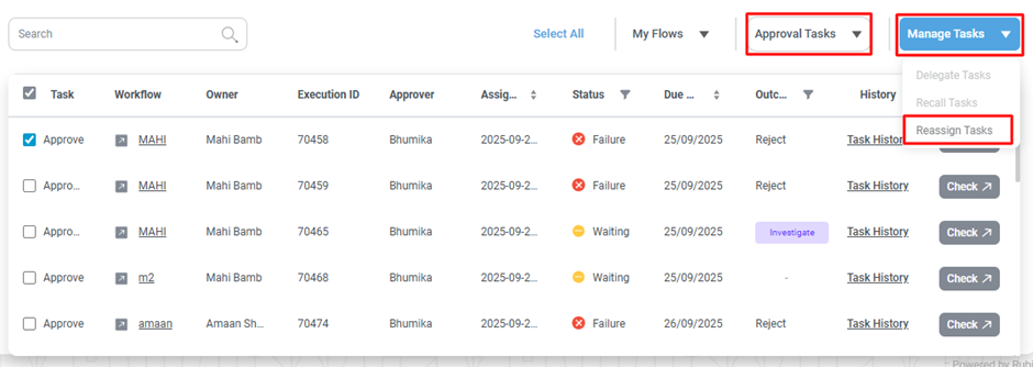 steps, assign approvers, and monitor task statuses within the same workspace.